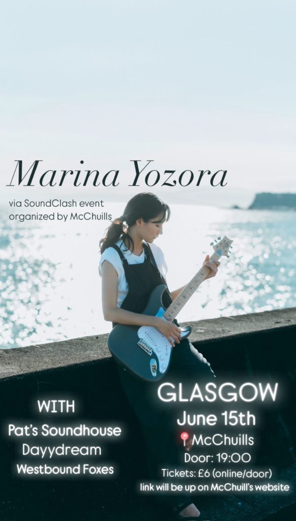 Marina will be playing live in Glasgow in June. Also on the bill will be Pat’s Soundhouse, Dayydream and Westbound Foxes. Check out the flyer below and make sure and get along to support her and these amazing bands.