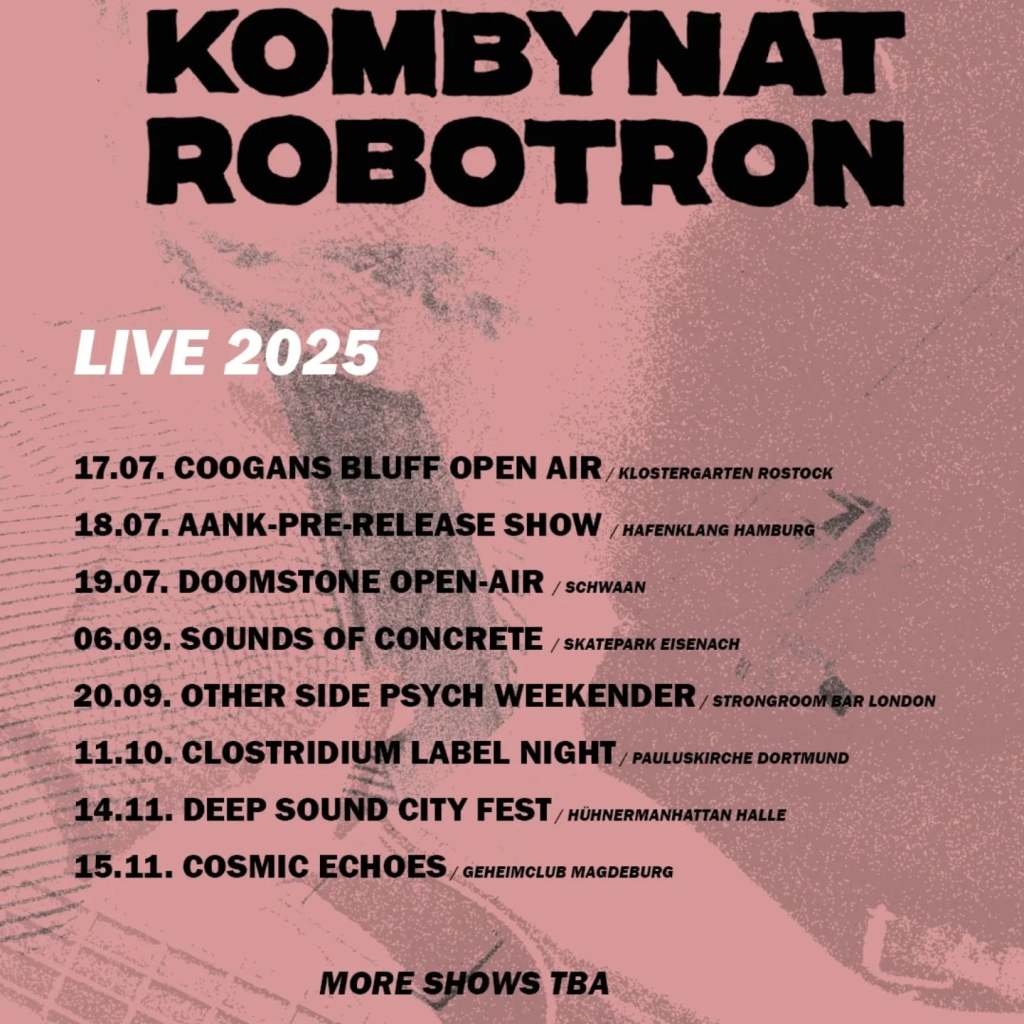 Since 2018, the amazingly names Kombynat Robotron have built something compelling: a steady, slow-burn rise from the basements of Kiel in Northern Germany to the festival stages of Europe. Over six albums on esteemed labels like Tonzonen, Cardinal Fuzz and Clostridium, they’ve pushed repetition, raw fuzz and sprawling jams into something that feels communal and alive. Anyone who’s seen them live knows those sets aren’t recitals. They’re living, breathing noise rituals built on instinct and risk.